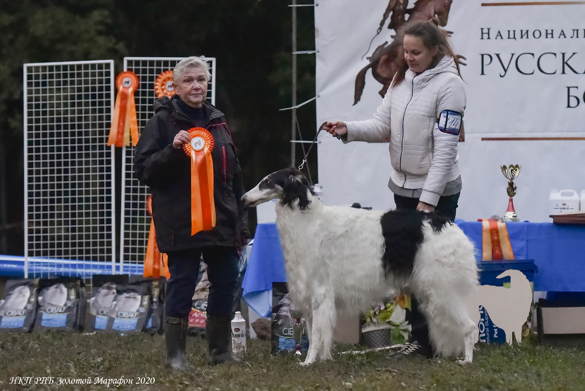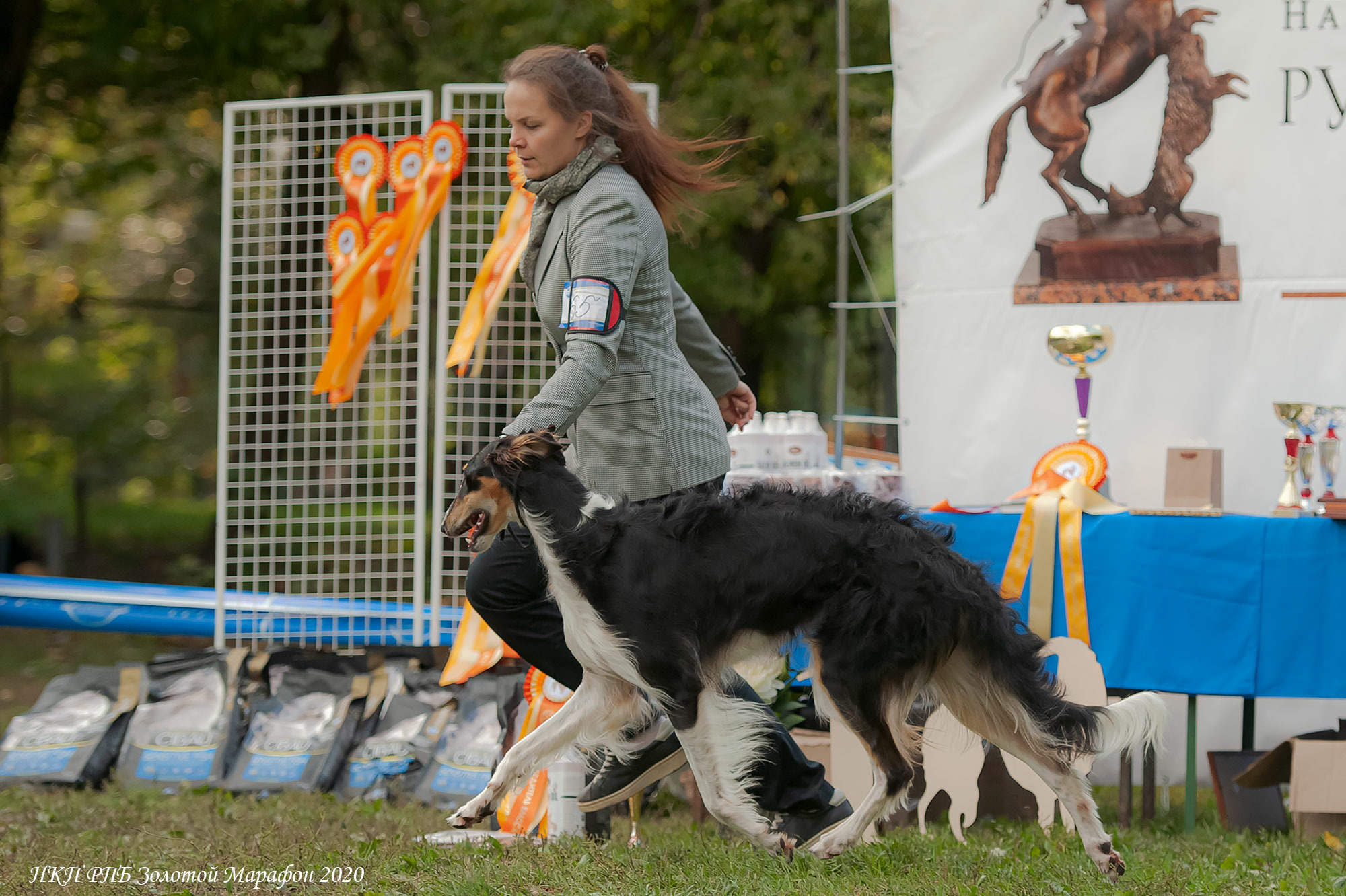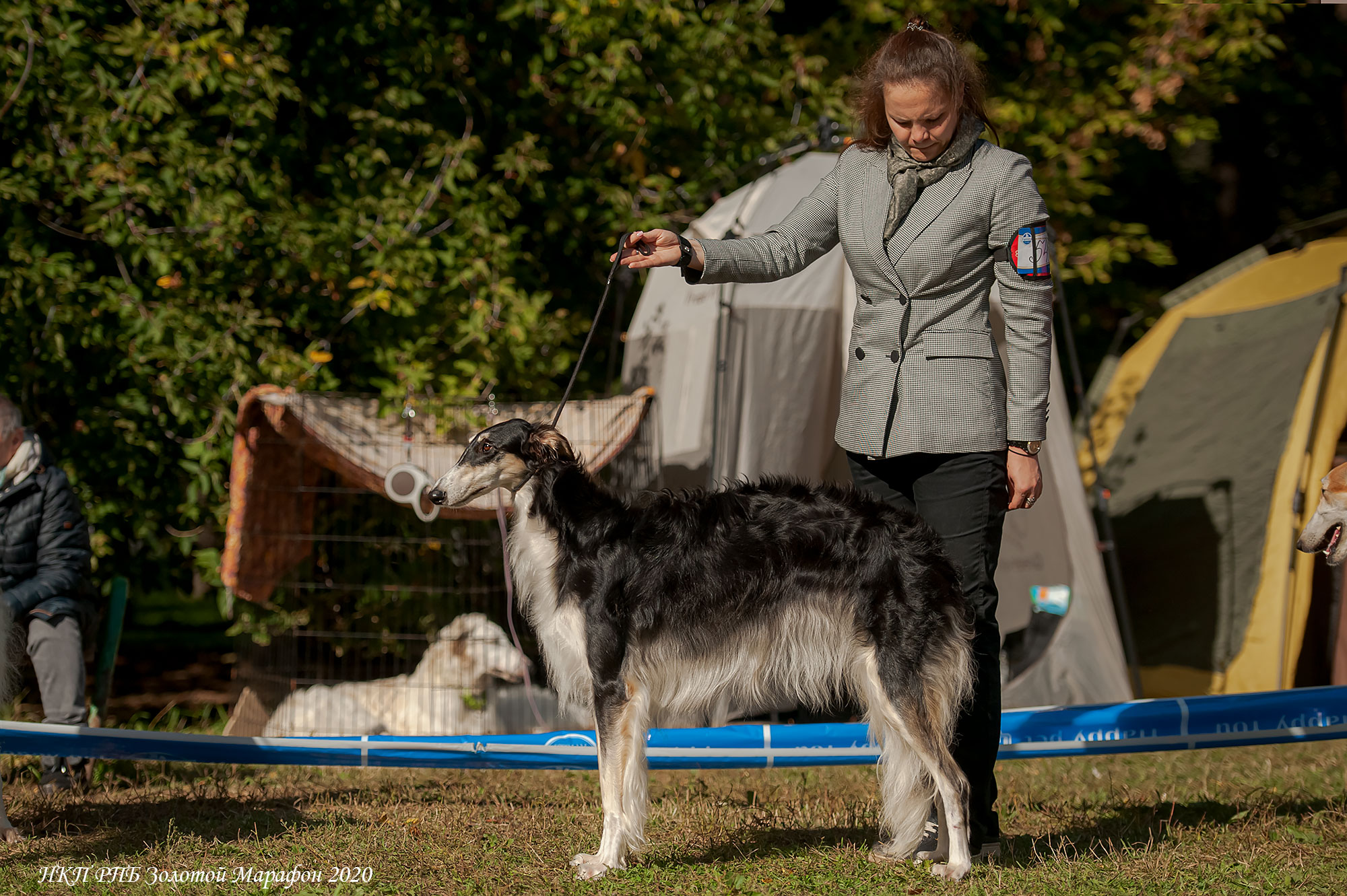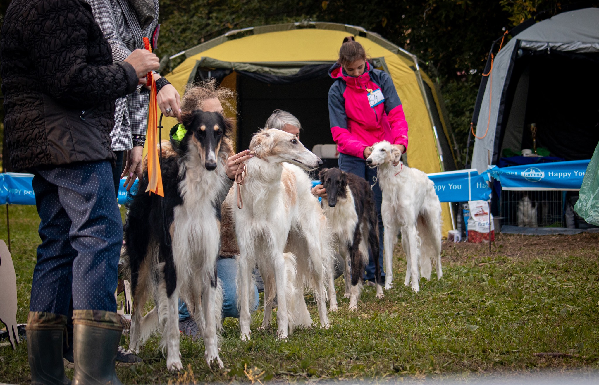 122 borzois participate.Judge : Mila Panteleeva ( Russia, borzoi kennel Vega Shelk).
